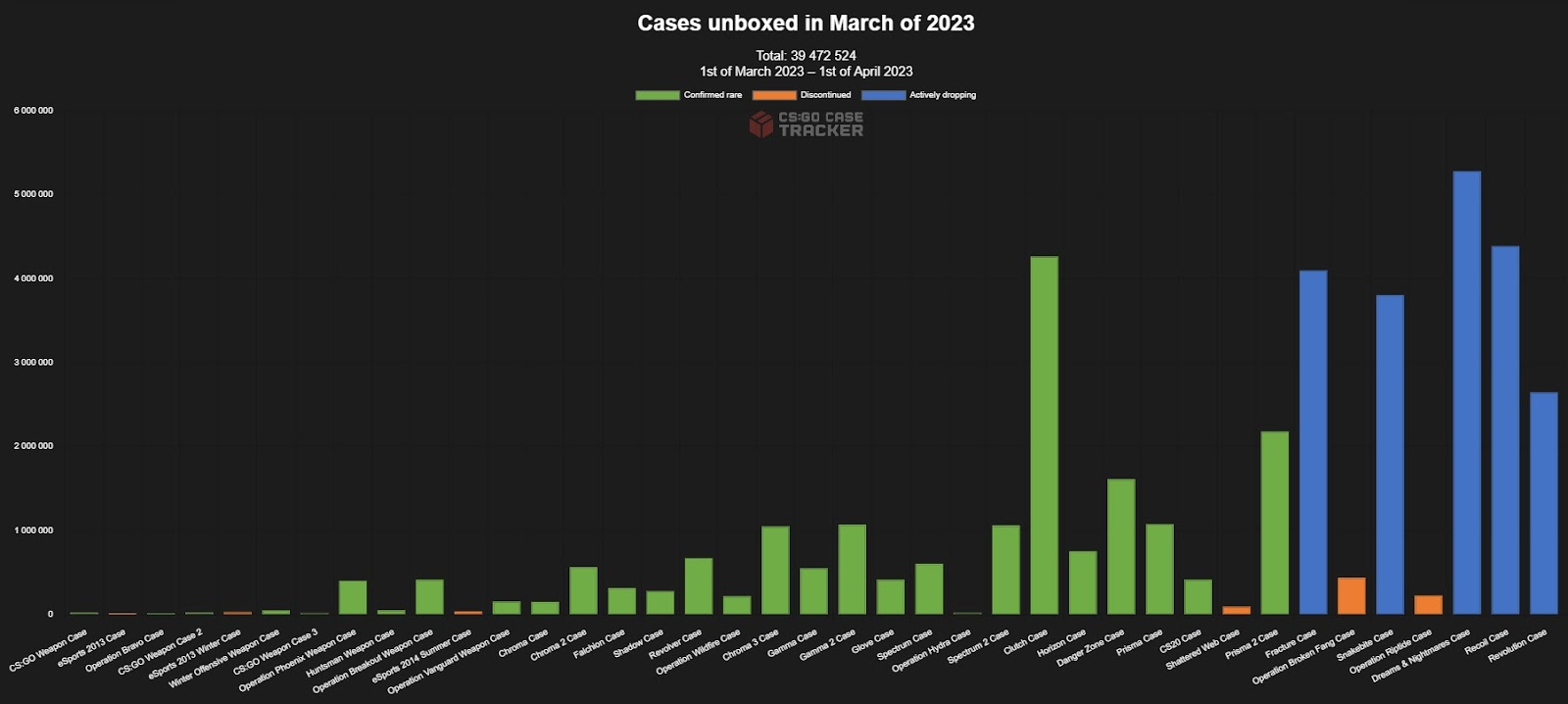 News 1: A new record in case openings. CS:GO players unboxed almost 40 million cases in March 2023
