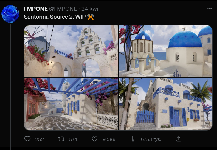 Санторини, сообщественная карта, созданная FMPFONE для Operation Wildfire, дебютировала в 2015 году. Несмотря на ее популярность, она никогда не была включена в официальную коллекцию карт Active Duty для Counter-Strike: Global Offensive и впоследствии была удалена из игры в 2016 году. Многих игроков привлекла эта карта своей яркой цветовой гаммой и уникальной атмосферой греческого острова, что выделяло ее среди других карт Counter-Strike: Global Offensive. Мы с радостью сообщаем, что согласно информации, опубликованной FMPONE (создателем карты) в его аккаунте Twitter, Санторини собирается вернуться в CS2. Поклонники этой карты скоро получат возможность вновь погрузиться в ее атмосферу в CS2. Мы с нетерпением ждем, как она будет работать в обновленной версии игры и надеемся, что она будет включена в коллекцию карт Active Duty.