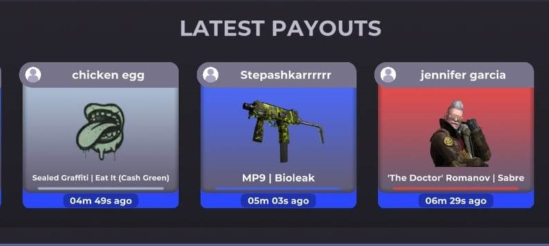 SkinApe позволяет вам проходить тесты по КСГО, играть в мобильные игры и т.д., чтобы выигрывать скины для вашей любимой игры.