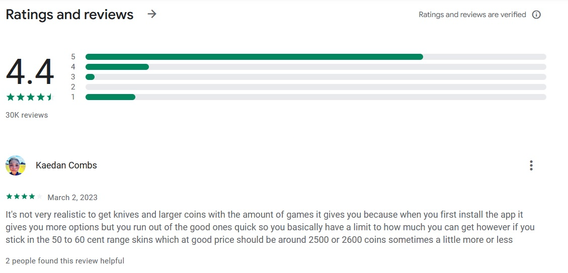 Это награды из одного из кейсов, который даже не является самым дорогим, который вы можете найти на SkinApe. Вас не должно удивлять, что, например, кейсы Ruby, Gloves и Knives имеют еще более лучшие награды, ждущие вас. Но не отчаивайтесь. Даже самые дешевые кейсы могут дать вам действительно интересные награды. Судя по этому, неудивительно, что SkinApe так популярен. На момент написания этой статьи, SkinApe был установлен более 1 миллиона раз в Google Play. Кроме того, мы уже предоставили вам огромное количество положительных отзывов о самом SkinApe. Это приложение идеально подходит для вас, если вы ищете крутые скины для CS:GO, не тратя ни копейки.
