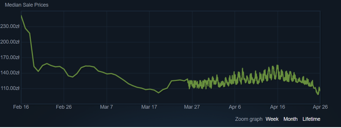 Однако цены на скины также могут быть подвержены сезонным факторам. Вначале новые скины имеют более высокую цену, но она обычно быстро падает, когда интерес к ним пропадает. Например, AWP Duality была введена 9 февраля 2023 года. На Steam Market она стоила 156,60 долларов. В настоящее время она стоит около 80 долларов.
